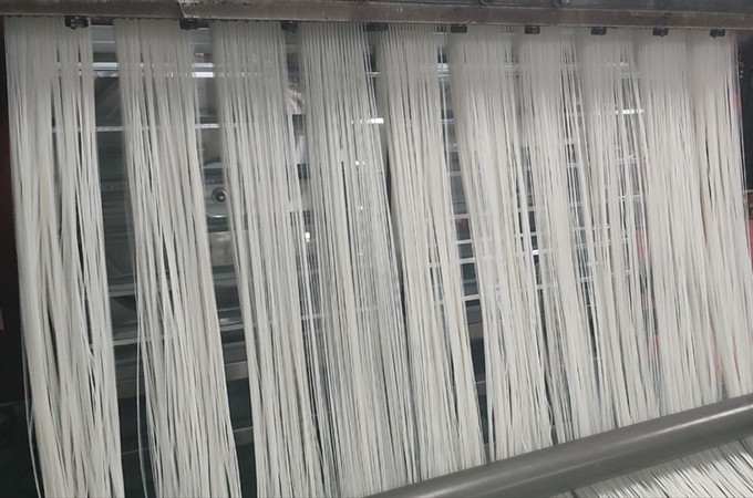 工藝流程:大米混配--加淀粉--粉碎--和料--熟化--擠絲--散絲攤薄--切斷掛桿--老化松絲--計量入盒--定型--烘干--成品